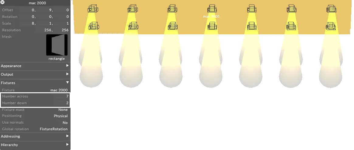 Section titled “Number Across, Number Down”This controls the number of fixtures in the grid attached to the screen surface.