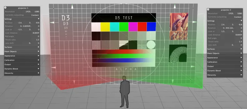 Projectors in d3 are used to sample content from projection surfaces and output them to feeds.